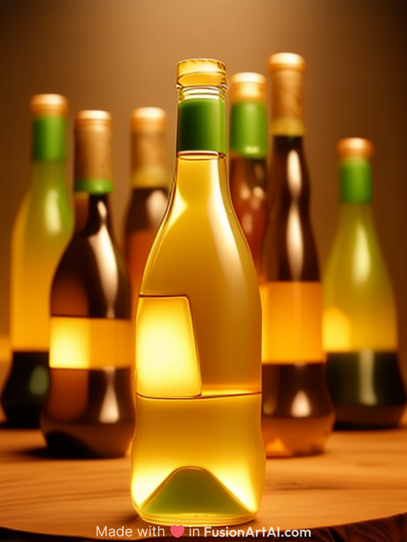 A whine bottle in front and a few in the back. moody dark coolors with a black background.